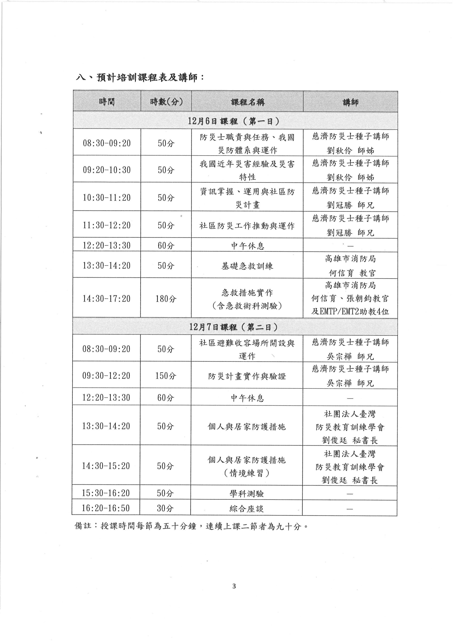 配合內政部國土管理署辦理[擴大中央及地方政府防災士培訓量能精進計畫]