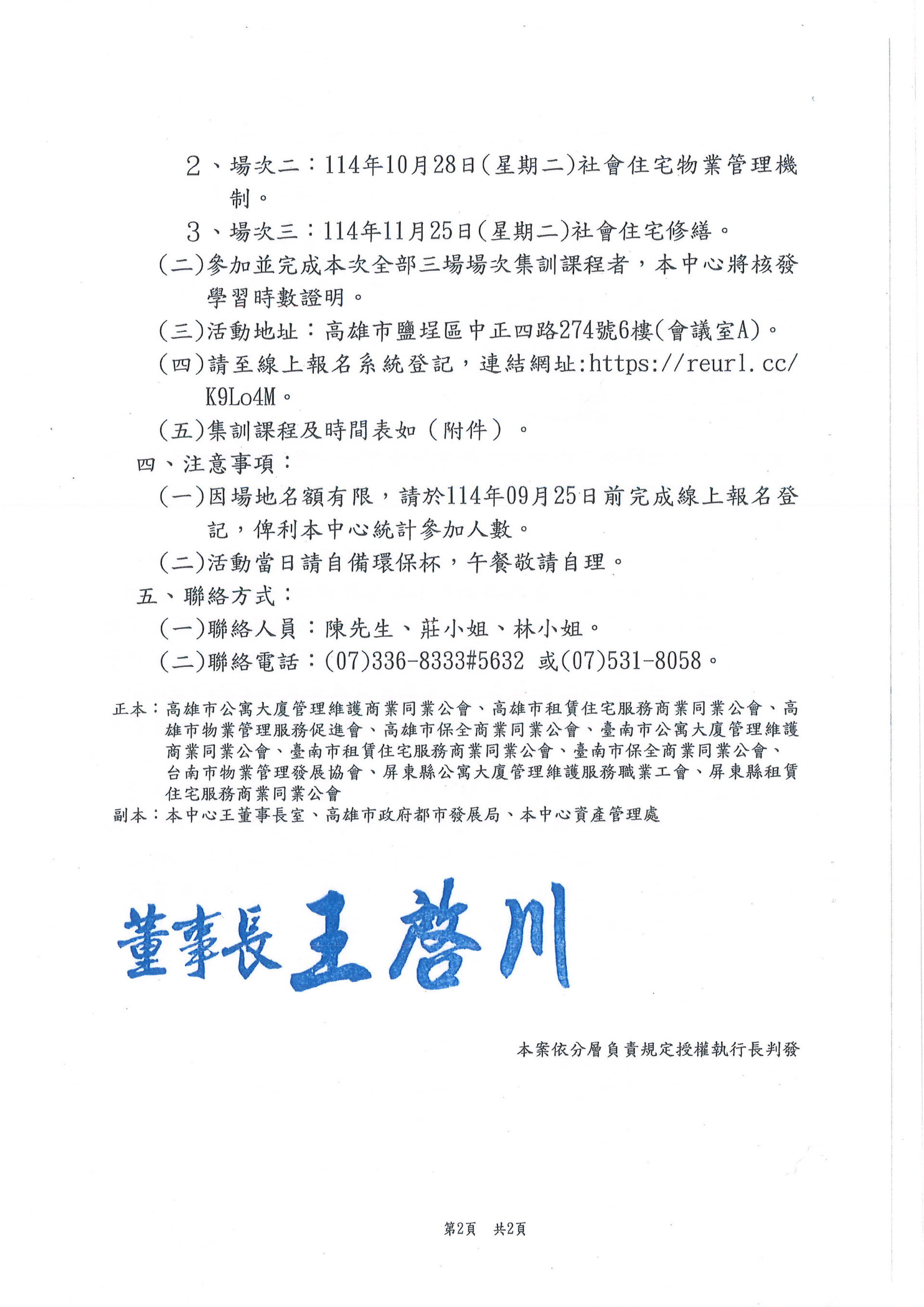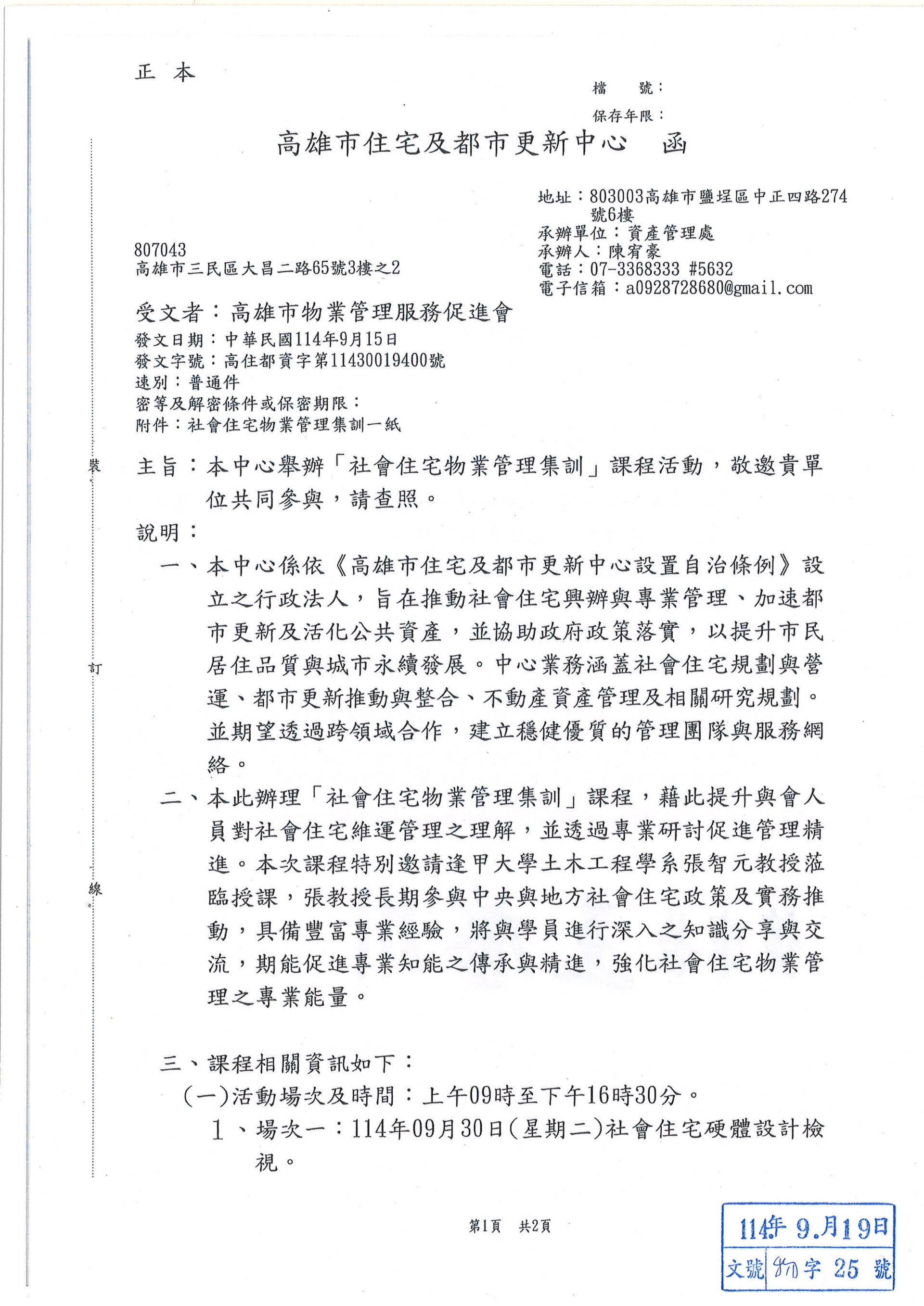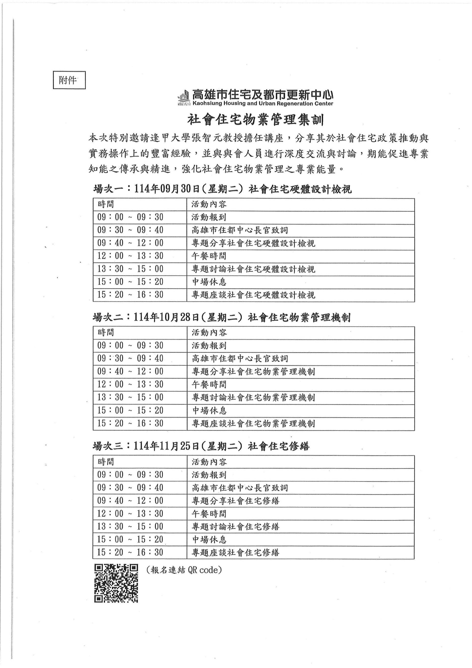 本中心舉辦[社會住宅物業管理集訓]課程活動,敬邀貴單位共同參與